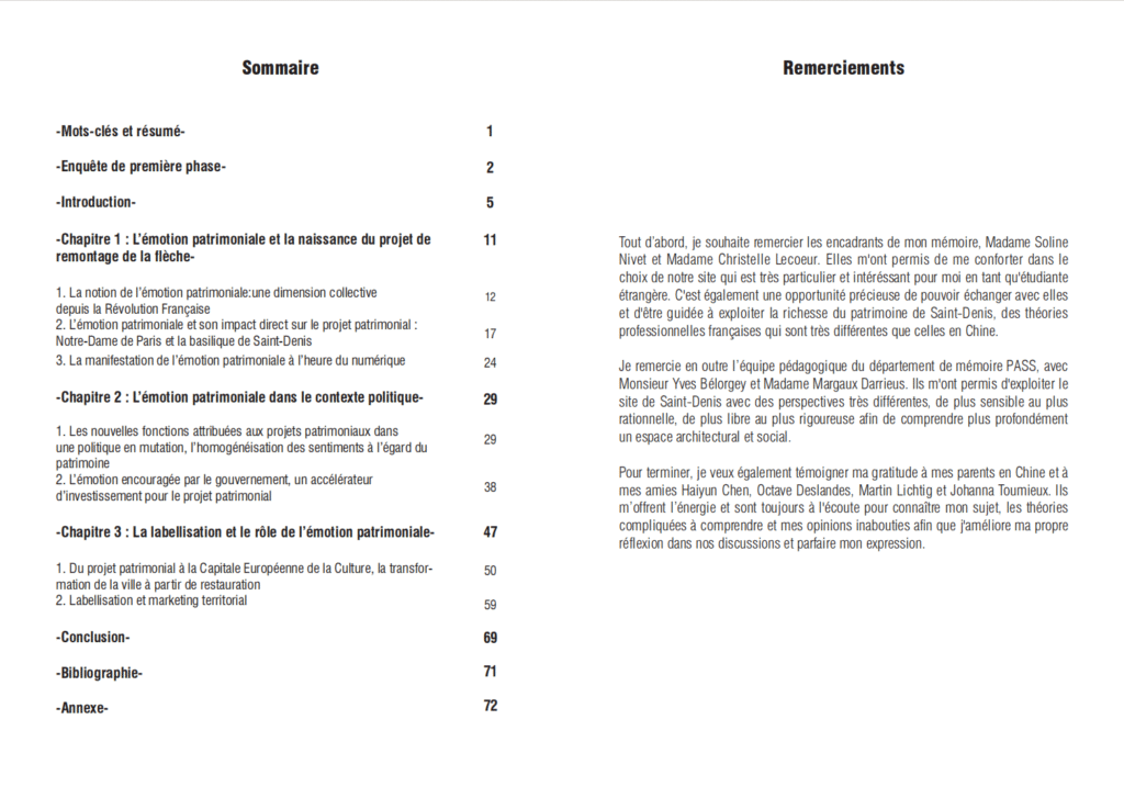 In the era of globalisation, nations, cities and individuals are losing sight of their own identity due to the synchronisation and standardisation of spaces. Heritage, as a trace of the past and proof of the continuity of time, creates an opportunity to rediscover our own roots. In this quest for identity, emotions are expressed: anxiety about identity and nostalgia for local culture, the past and even the present. These various emotions for heritage, in 21st-century cities such as Saint-Denis with the rebuilding of its spire, are becoming a major driving force for social mobilisation and are accelerating urban gentrification.